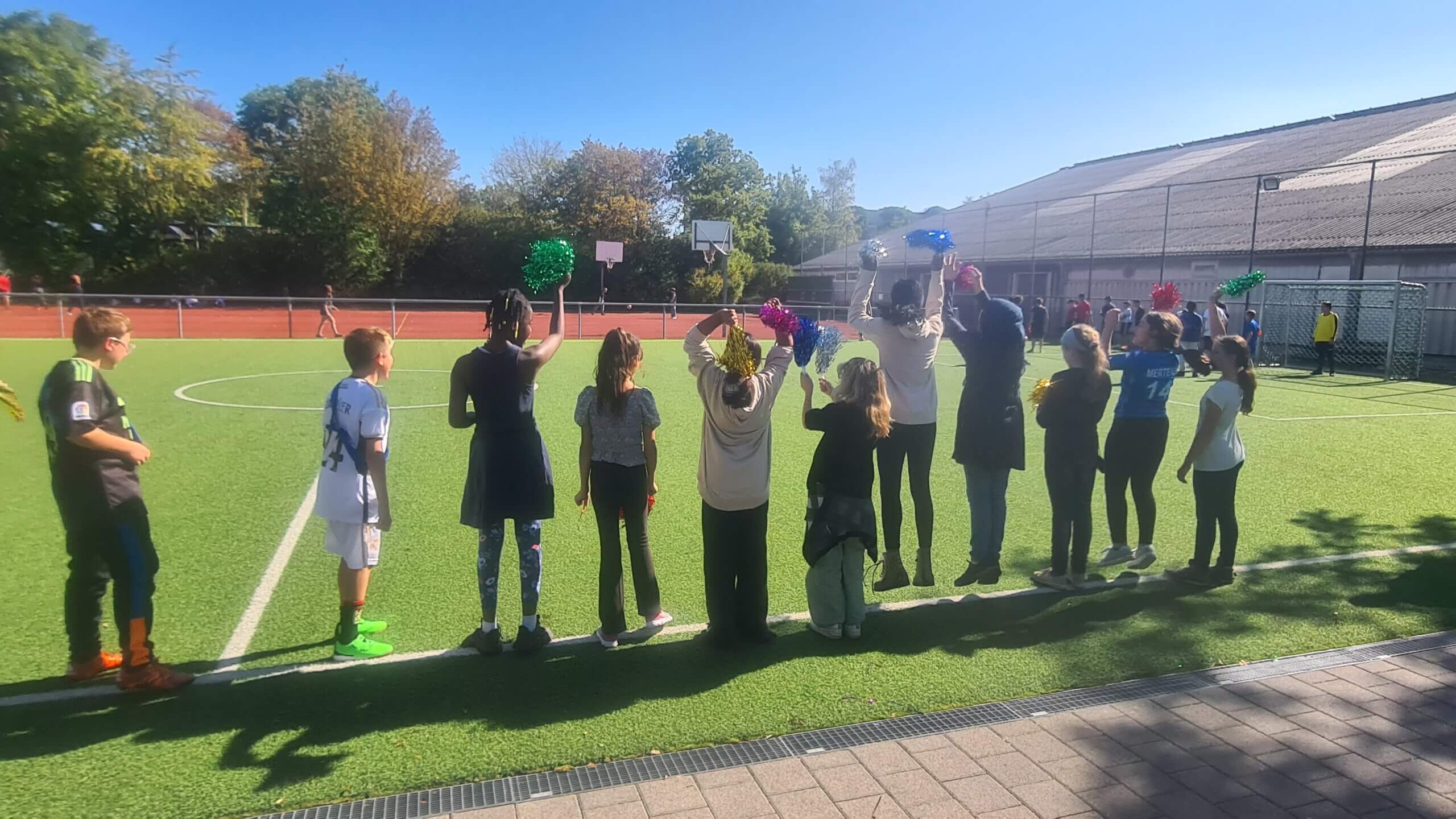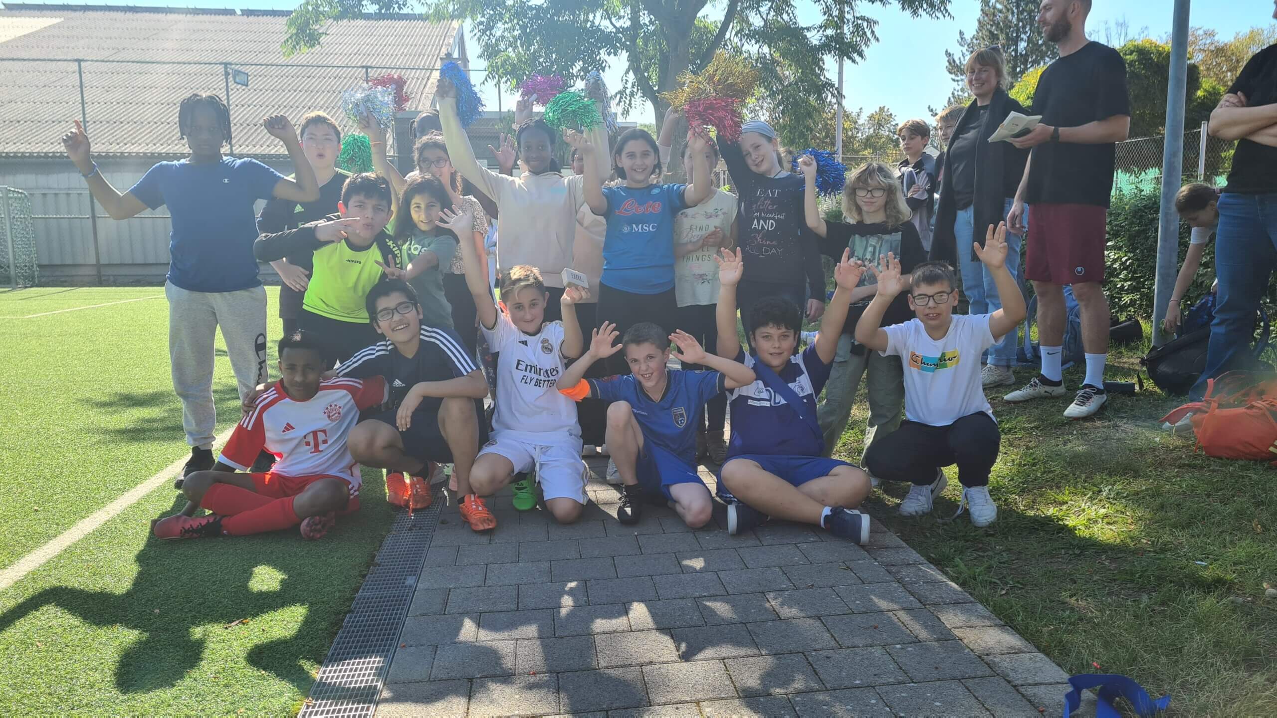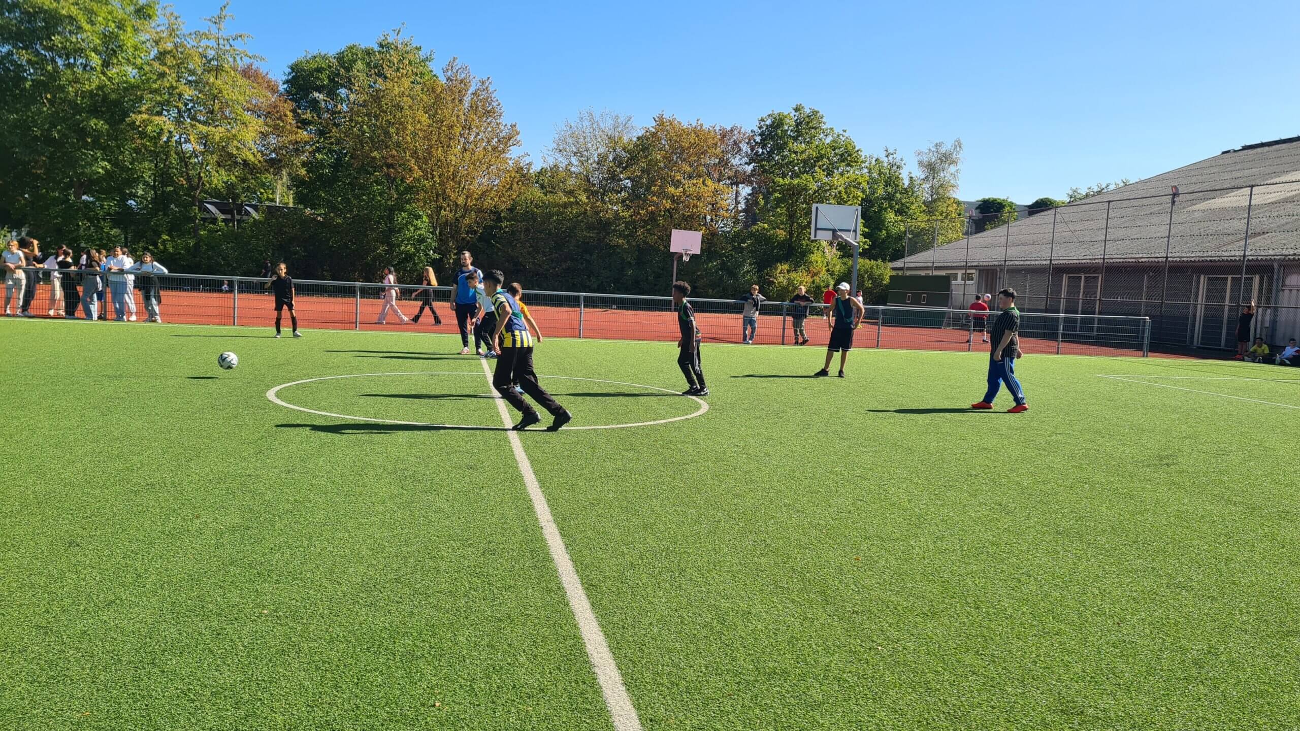 Wie jedes Jahr fand unser SMV-Fußballturnier statt, nur mit dem Unterschied, dass unsere fast ungeschlagene Lehrermannschaft dieses Mal keine Chance hatte gegen den bisherigen Turniersieger. Die Vorfreude auf dieses Turnier war schon Tage vorher an der ganzen Schule spürbar. Es wurden Mannschaftsaufstellungen diskutiert, Schienbeinschoner verliehen und Stollenschuhe weich geknetet. Cheerleadingmannschaften wurden gebildet und Schlachtrufe formuliert, um die eigene Klasse so richtig motiviert anfeuern zu können – mit großem Erfolg! Die Stimmung an diesem Mittwochnachmittag war überragend auf dem SG-Gelände in Weilimdorf, wo sich die gesammelte Schüler- und Lehrerschaft ab 11Uhr eingefunden hatte. Für das leibliche Wohl wurde von den 7. Klassen gesorgt und dank der Technik-AG schallten sportive Hymnen aus den Lautsprechern. Alle kämpften hart aber fair und so konnte die Klasse 6a in der Gruppe der Unterstufe einen ungeschlagenen Sieg verzeichnen, ebenso wie die 8a in der Oberstufe, die zuletzt sogar die Lehrer der GMSW in Grund und Boden spielten. Herzlichen Glückwunsch zu eurem Sieg, aber zieht euch warm an, die Pauker wollen beim nächsten Kick eine Revanche ;-) Wir bedanken uns für diesen aufregenden, lustigen und sportlich fairen Nachmittag und freuen uns schon auf das nächste Event an der GMSW.