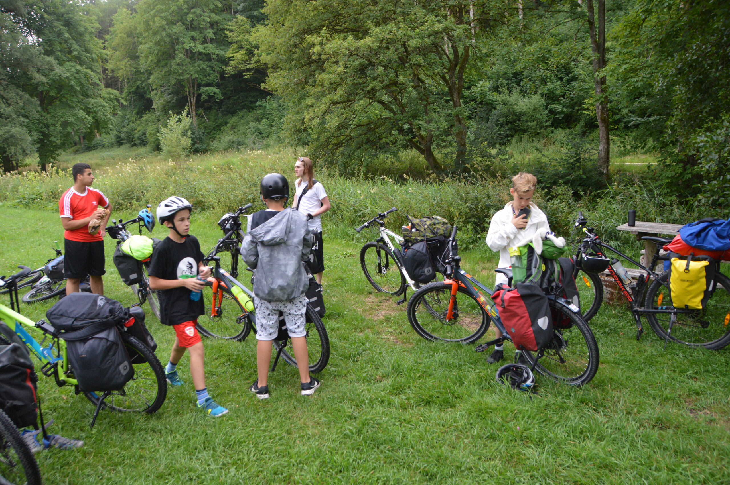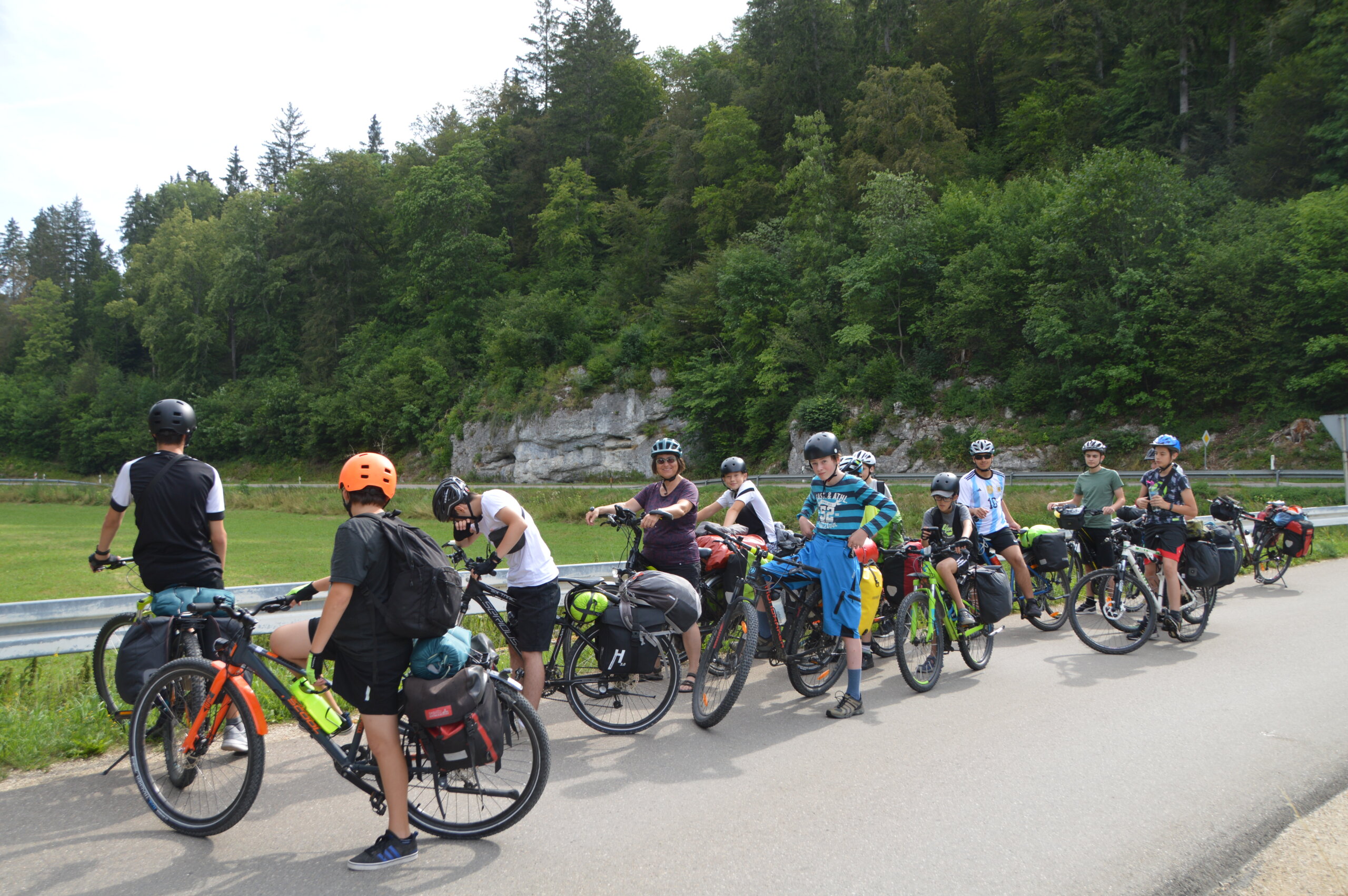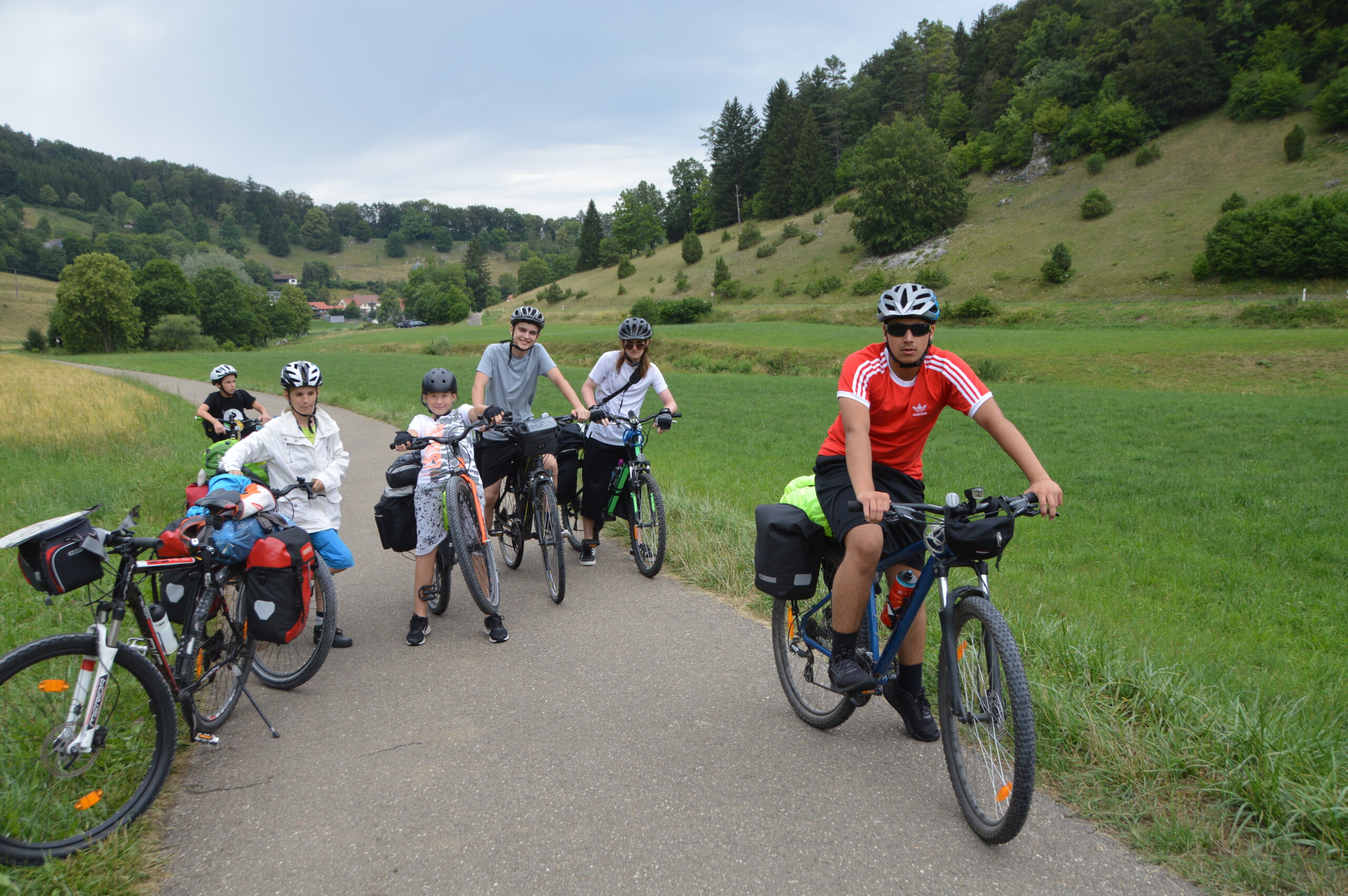 Mittwoch, 19. Juli 2023: Mit jetzt bereits 150 km in den Beinen starteten wir von Hayingen Richtung Zwiefalten, schauten uns die Wimsemer Wasserhöhle an und erreichten gegen Mittag das Donautal. Heute war es sehr heiß und wir hatten eine lange Etappe vor uns. Das Donautal zog sich dahin und gegen 17.00 Uhr erreichten wir endlich Sigmaringen. Hier kauften wir für das Abendessen ein und starteten zum letzten Teilstück im oberen Donautal mit tollen Blicken auf die Felsen am Rand des Tales. Endlich kamen wir im Talhof an, in dem wir den Abend und die Nacht verbrachten. Unser Chefkoch Deniz zauberte leckeren Thai Curry mit Reis. Das obere Donautal ist wirklich sehr abgelegen und so gab es kein Wlan und nicht immer Handynetz – für manche ein Riesenproblem. Die echten Probleme kamen dann aber in der Nacht: Drei Jungs mussten mehrfach spucken und ihnen ging es auch am nächsten Morgen nicht besser, so dass sie von ihren Eltern abgeholt werden mussten. Schade, so kurz vor dem Ziel!