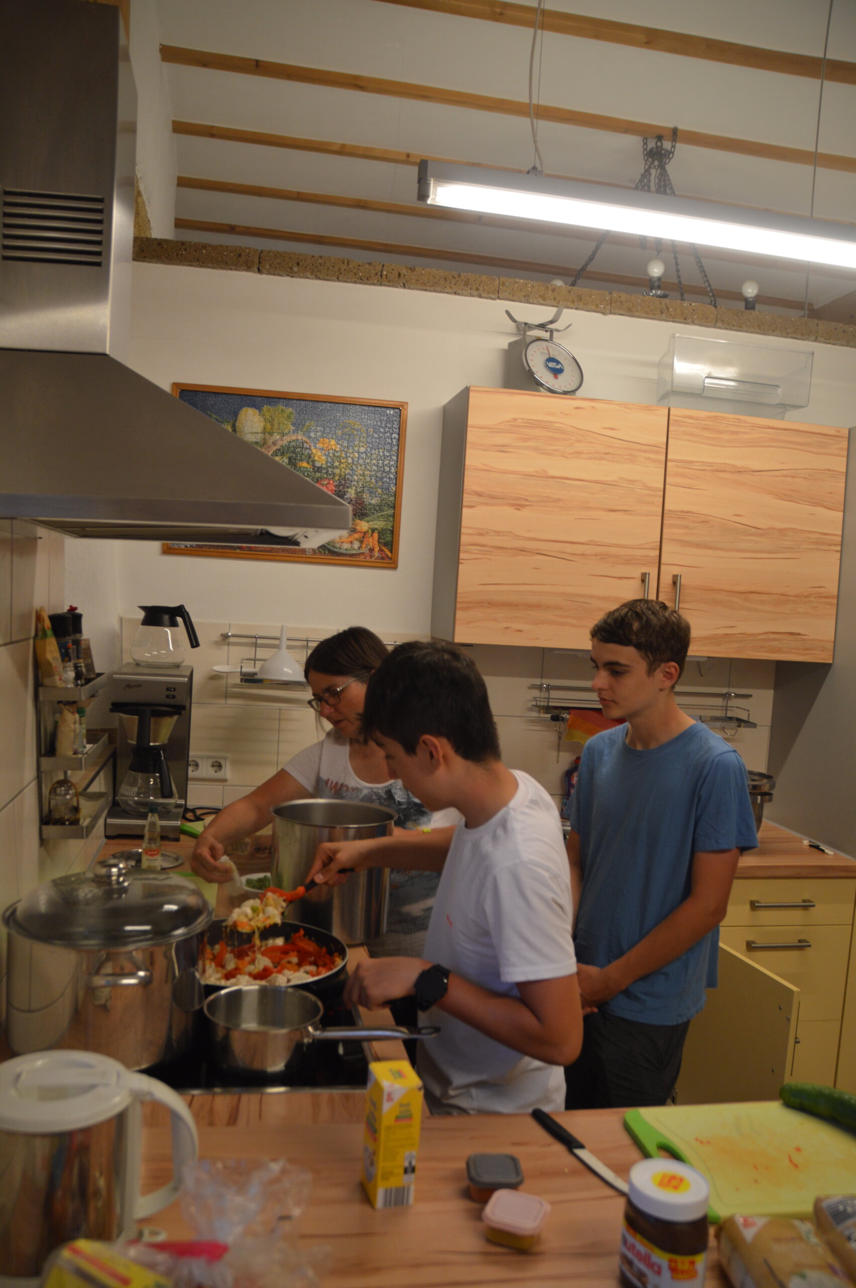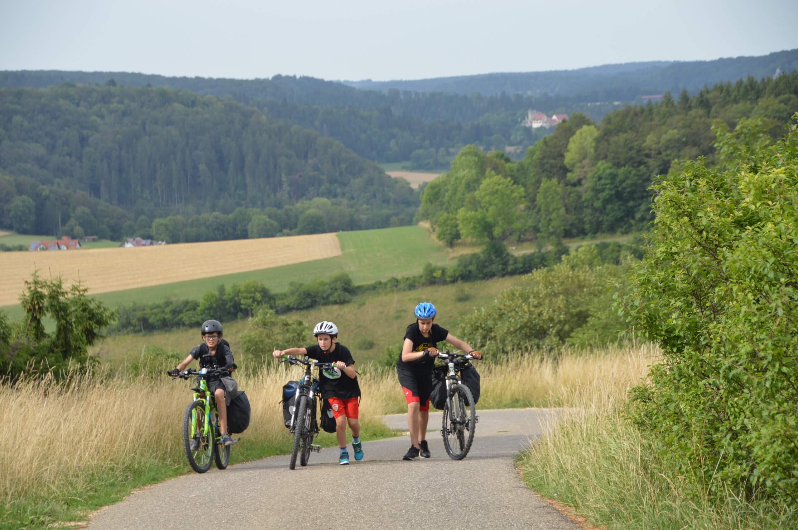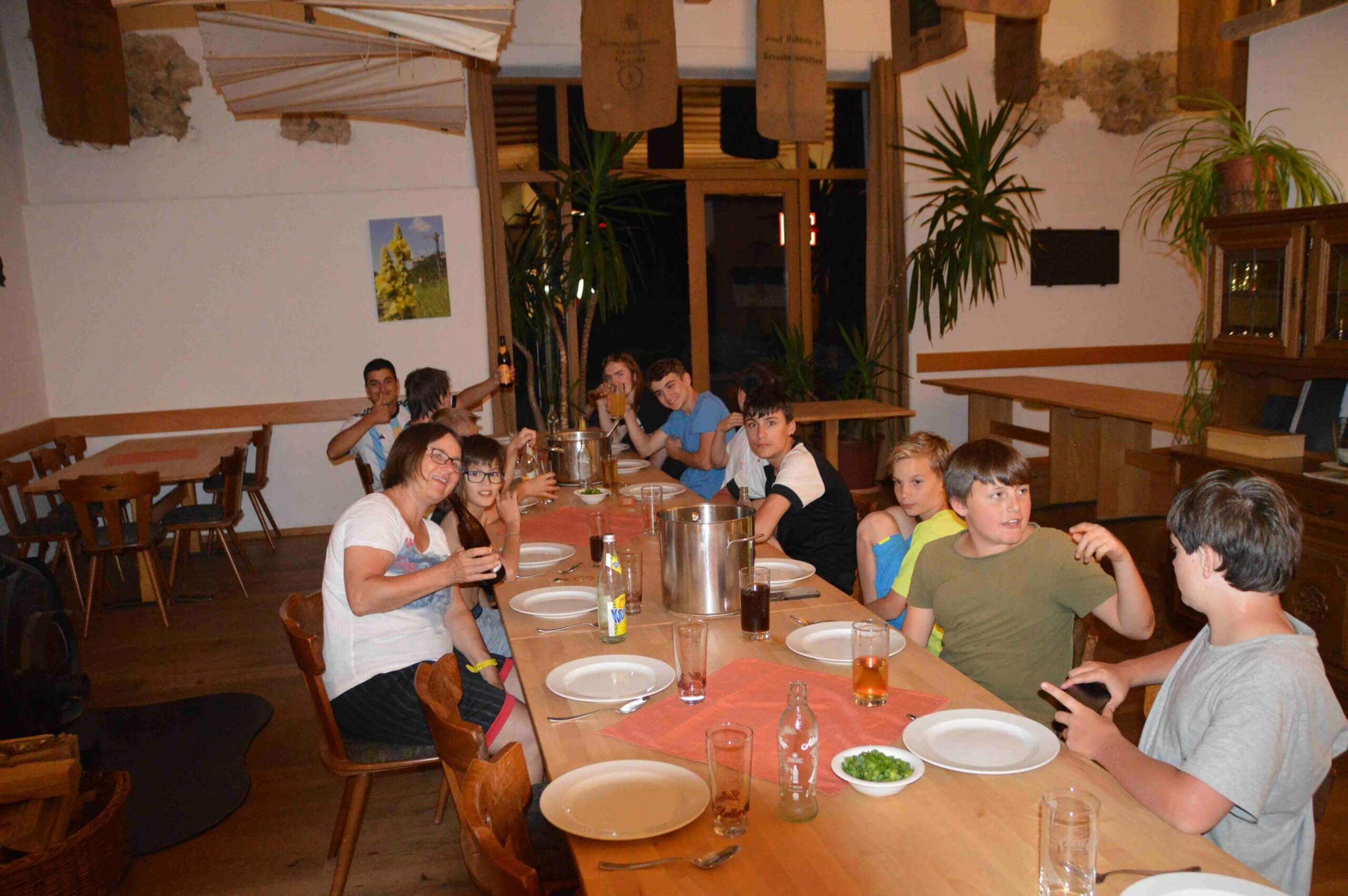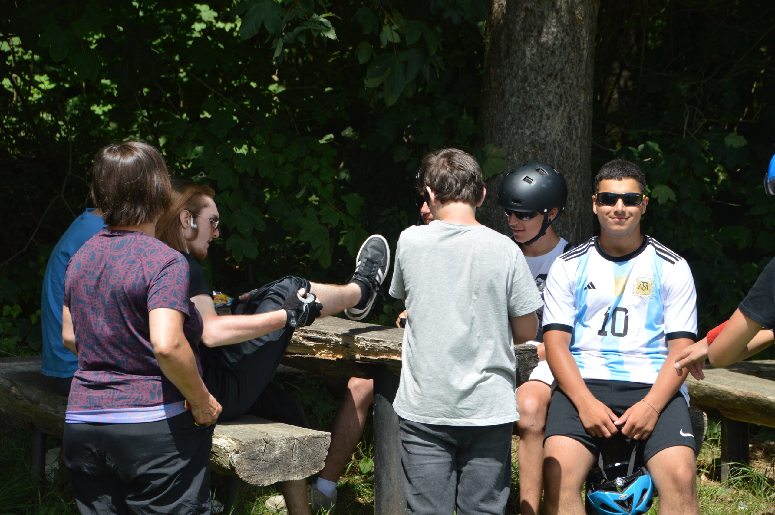 Mittwoch, 19. Juli 2023: Mit jetzt bereits 150 km in den Beinen starteten wir von Hayingen Richtung Zwiefalten, schauten uns die Wimsemer Wasserhöhle an und erreichten gegen Mittag das Donautal. Heute war es sehr heiß und wir hatten eine lange Etappe vor uns. Das Donautal zog sich dahin und gegen 17.00 Uhr erreichten wir endlich Sigmaringen. Hier kauften wir für das Abendessen ein und starteten zum letzten Teilstück im oberen Donautal mit tollen Blicken auf die Felsen am Rand des Tales. Endlich kamen wir im Talhof an, in dem wir den Abend und die Nacht verbrachten. Unser Chefkoch Deniz zauberte leckeren Thai Curry mit Reis. Das obere Donautal ist wirklich sehr abgelegen und so gab es kein Wlan und nicht immer Handynetz – für manche ein Riesenproblem. Die echten Probleme kamen dann aber in der Nacht: Drei Jungs mussten mehrfach spucken und ihnen ging es auch am nächsten Morgen nicht besser, so dass sie von ihren Eltern abgeholt werden mussten. Schade, so kurz vor dem Ziel!