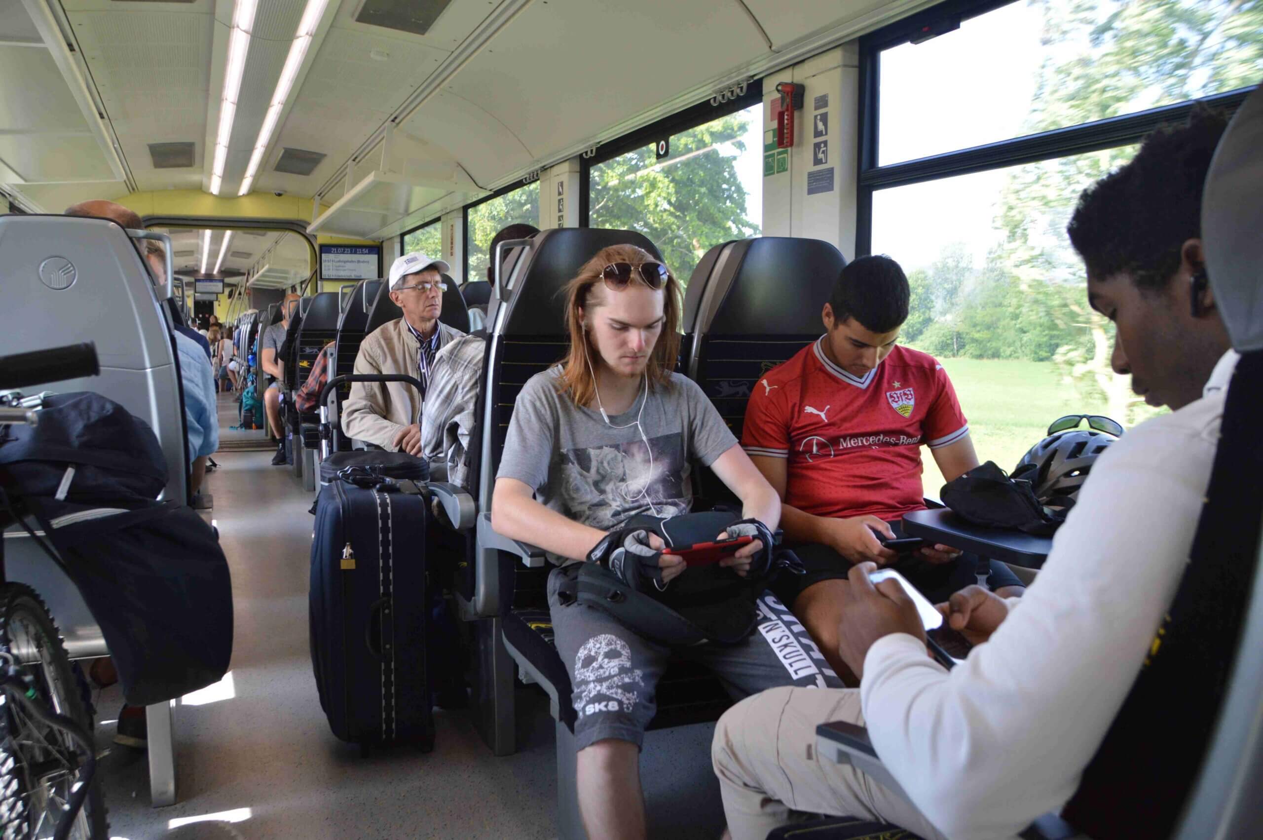 Freitag, 21. Juli 2023: Unser letzter Tag der großen Fahrt begann mit einem guten Frühstück und mit einer kurzen Tour nach Radolfzell. Dann hatten wir die 300 km voll und fuhren mit dem Regionalzug über Friedrichshafen und Ulm zurück nach Stuttgart. So eine Bahnreise ist auch nicht schlecht.