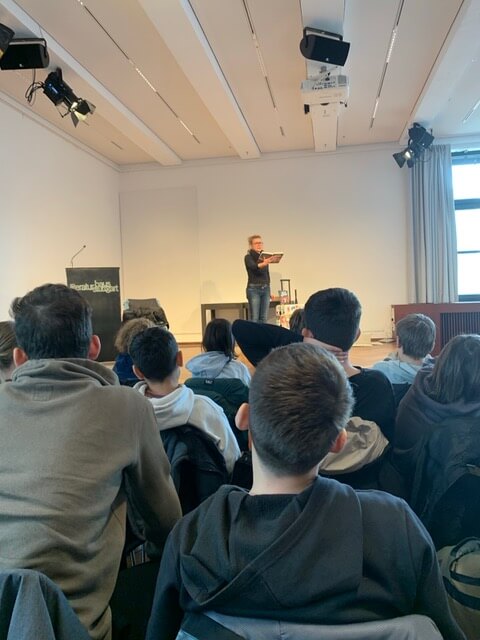 Nach der Lesung dürfen ihr die SchülerInnen Fragen stellen und sie verspricht, auf jede Frage ganz ehrlich zu antworten und ermuntert die Schülerinnen und Schüler dazu, sie alles zu fragen, was sie wissen möchten. Ihr Versprechen hält sich durchaus.
