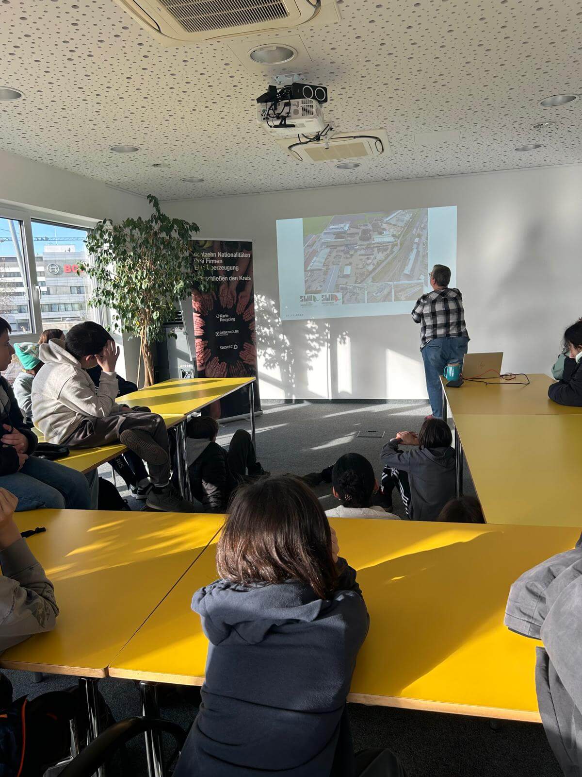 Die Eltern der 6c freuen sich gerade besonders darüber, dass ihre Kinder den Müll entsorgen, der sich seit Ewigkeiten in einer Kellerecke türmt: kaputte Haushaltgeräte, Sprühdosen, Batterien und alles andere, was nicht in den Haushaltsmüll darf. Bei einer Führung bei Karle Recycling in Feuerbach konnten sie sich anschauen, wo der ganze Kruscht hinkommt, wenn er unbrauchbar und unbenutzbar geworden ist. Sie konnten sehen, welche Materialien zum Beispiel in einem alten Kabel stecken, wie es weiterverarbeitet wird und was passieren kann, wenn man es einfach in den Mülleimer zu Hause wirft.